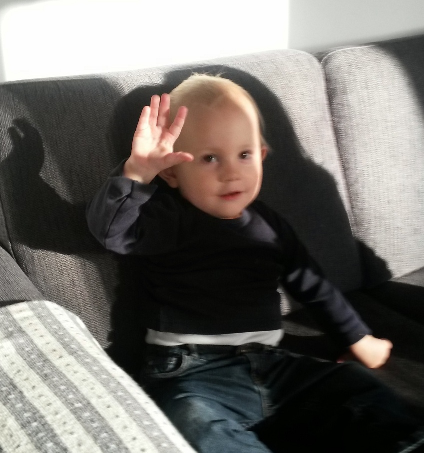 (Knægtens er begyndt at tale og kan både sige Skål (mærkværdigvis han første ord) Tak, Ja og Far – Red.)